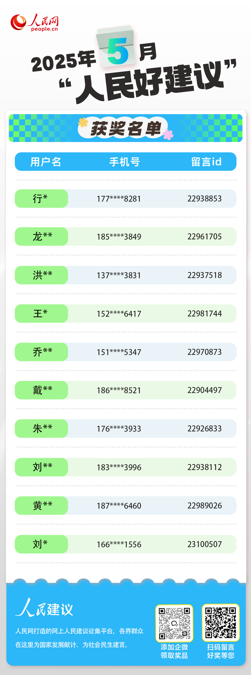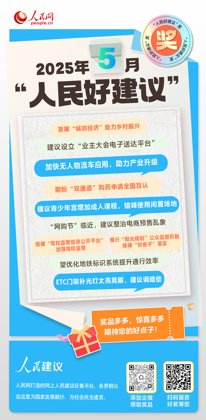 5月“人民好建議獎”名單出爐,熱議焦點搶先看!